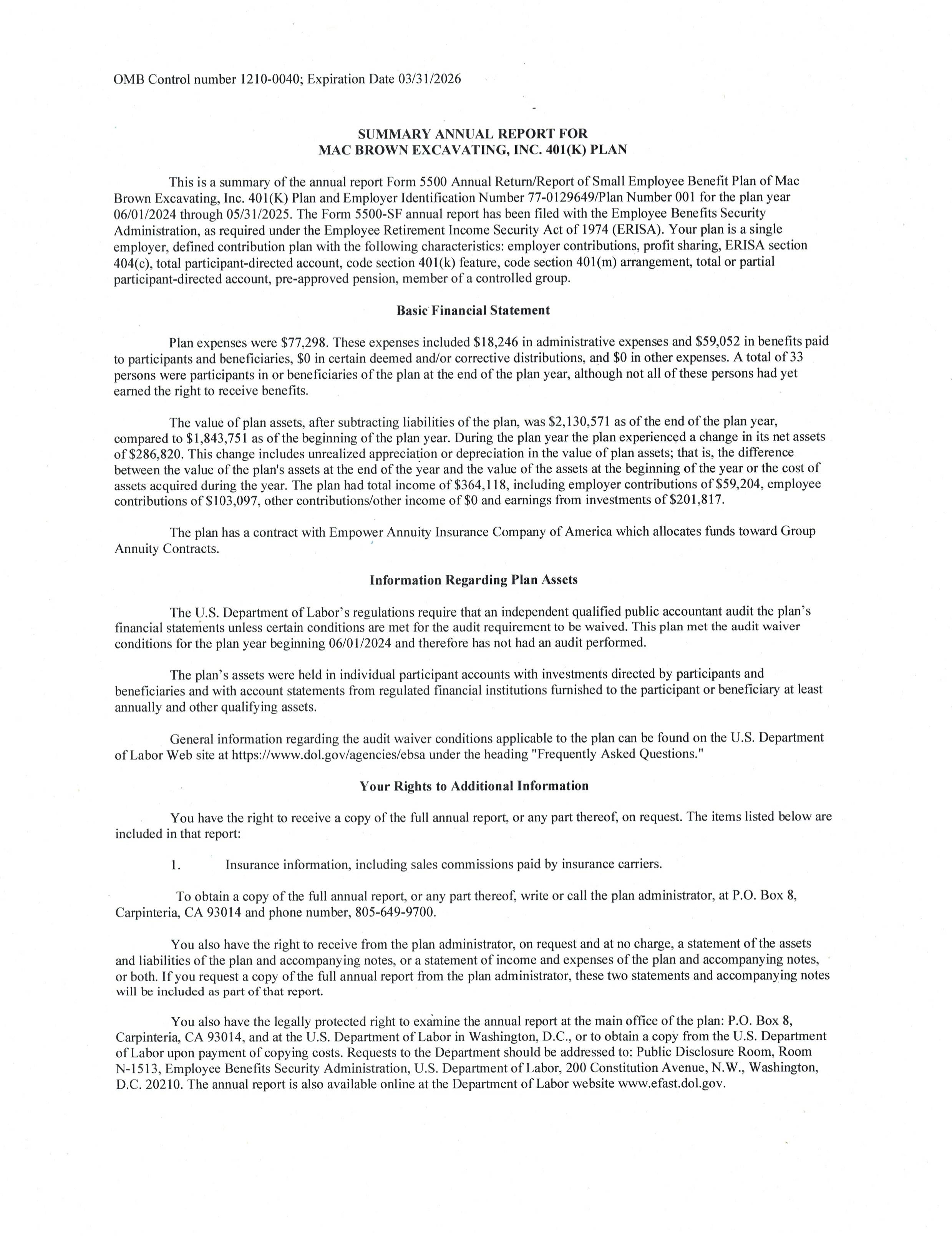 MBX 401k Plan for 5/31/2025